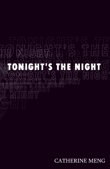poems titled TONIGHT’S THE NIGHT. In the Author’s Note, Meng explains that the poems inside “began as an experiment in repetition after reading biographies of both Neil Young and Glenn Gould.” “In this poem, the camera spectates on what to do with a darkness/ so overwrought the hand can’t steady it. The kind/ that furiously dwindles until it cancels its mouth/ & the tongue thumps grotesque & unhinged/ Unhinges each blad of grass, unhinges the pasture from the wire/ & fence posts that hold cattle from the road. Swiftly, swiftly,/ it unhinges both road & cattle. Where canyon was cut from rock/ by water, a wind moves, so the voice goes/ rising as darkness does, wildly undocumented./ The voice unhinges from the country it springs from-“-from TONIGHT’S THE NIGHT. Meng’s poems have appeared, among other places, in The Boston Review, Crowd, JUBILAT, FENCE, and Fulcrum.